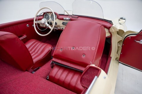 · Luxurious Original Interior: Despite the sporty modifications, the original, luxurious leather interior has been preserved, finished in the classic DB608 Elfenbein (ivory) with red leather, a combination often seen in 1950s sports cars. This highlights the car's classic character and creates a timeless, stylish appearance that perfectly complements the sporty lines of the 190 SLR.
